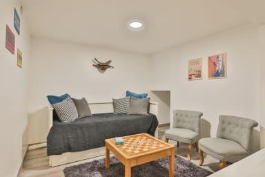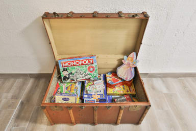 Au sous-sol, se trouve une salle de jeux conviviale avec :