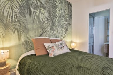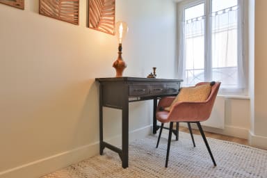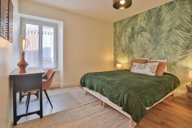 - une suite parentale avec un lit double (160x200) et un petit bureau, idéal pour du télétravail. Et une salle d’eau attenante à la chambre (douche et lavabo)