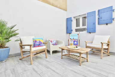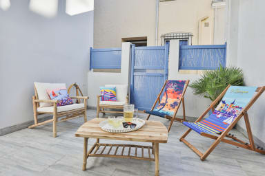 - d’une cour-terrasse agréable avec assises et transats pour profiter du soleil autour d’un apéritif. Sécurisée, elle offre aussi un espace pratique pour stationner vos vélos avec un accès direct sur la rue.