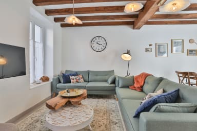 - d’une pièce de vie chaleureuse avec un salon confortable et télévision ainsi qu'un espace repas (grande table familiale)