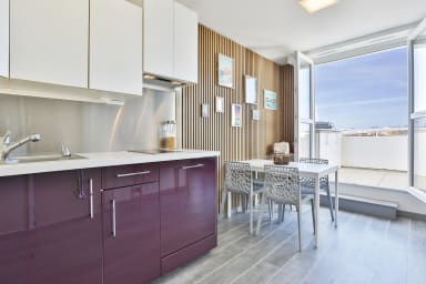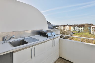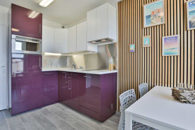 - Une cuisine équipée d’un four combiné, d’un lave-vaisselle, d'un réfrigérateur-congélateur, d’un grille-pain, d'une cafetière à dosettes Krups…